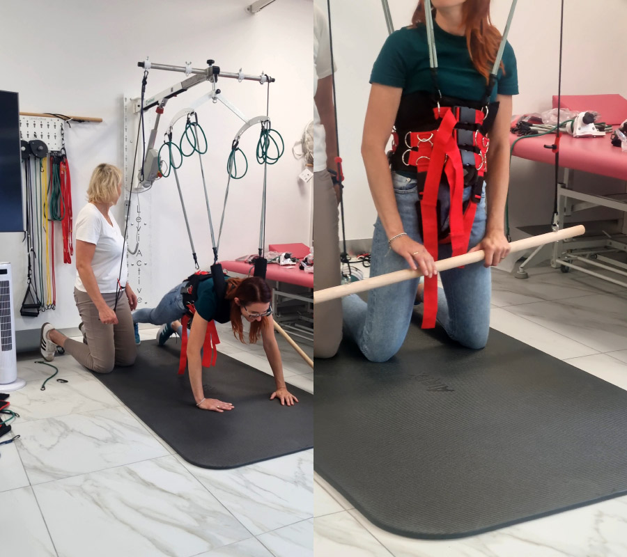 – Dla mnie bardzo istotne w fizjoterapii jest to, by dać pacjentowi sprawczość. I super, jeżeli technologia to ułatwia! Ja na ogół pracuję z pacjentami neurologicznymi, często są to osoby z zanikami mięśni – opowiada Małgorzata Wójcik, fizjoterapeutka z Centrum Rehabilitacji Reha360 w Gliwicach. – Fizjoterapeuta musi dopasowywać stosowaną technologię do potrzeb i możliwości pacjenta – ja często pracuję na systemie umożliwiającym tzw. podwieszanie pacjenta. W tym systemie możemy pracować nad rzeczami, nad którymi dotychczas ciężko było pracować, ponieważ pacjenci z SMA często nie mogą być pionizowani tradycyjnymi metodami ani przeciążani, m.in. ze względu na ograniczenia ruchowe, deformacje ciała i szeroko pojęty ból. Tymczasem pracując w podwieszeniu i w odciążeniu możemy pracować nad uelastycznieniem całego ciała, nad jakością funkcjonowania organizmu, nad układem krążenia, oddechowym, pokarmowym… Ćwiczymy i dajemy pacjentom sprawczość, a to ma ogromne przełożenie na ich stan psychiczny! – podsumowuje Wójcik.