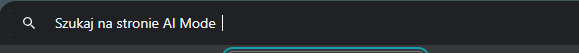 Wpisujemy sobie wybraną przez siebie nazwę (u mnie AI Mode). Następnie wpisujemy Skrót. To dość ważna pozycja, bo dzięki niej będziemy mogli korzystać z trybu AI bezpośrednio nawet jeśli nie uczynimy go domyślnym. Jeśli w okienku adresowym przeglądarki wpiszemy ten skrót a następnie Spację lub Tab, to będziemy mogli wyszukiwać właśnie przez Tryb AI. Wygląda to tak: